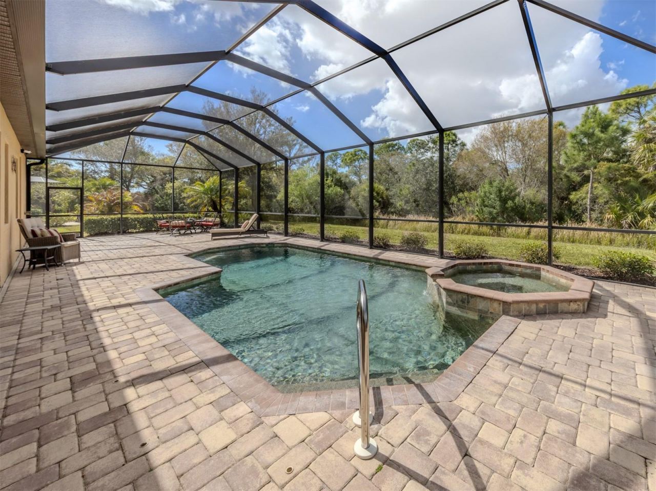 You will love the spacious and luxurious yet cozy feel of this well appointed, stately home with large screened lanai, pool and spa in the Resort-Style gated community of Gran Paradiso with outstanding amenities. Walking in you will immediately notice how special this expansive open split bedroom floor plan is. Just off the foyer is a large den (5th bedroom) formal dining, and lovely living room that flow nicely to the extra large kitchen, airy breakfast room and additional family room spaces, providing amazing entertaining options- all with beautiful pool and natural preserve views. The oversized primary suite is a true retreat with sitting area, spa style bathroom and huge walk-in closet.A 3 car garage makes all the difference for storing small water craft, golf cart, bikes, beach accessories and boating/fishing gear. Golf Cart and Furniture are available to be included making this home fully ready to Enjoy! HOA includes lawn care, irrigation, cable, internet and use of the community amenities: a resort-style swimming pool, clubhouse, gym, tennis/pickleball courts, playground and full time activity director. Conveniently located to Historic Downtown Venice, multiple beaches, airports, hospitals and schools, Wellen Park and the Atlanta Braves Spring Training facility. Make an appointment today to view this wonderful property!