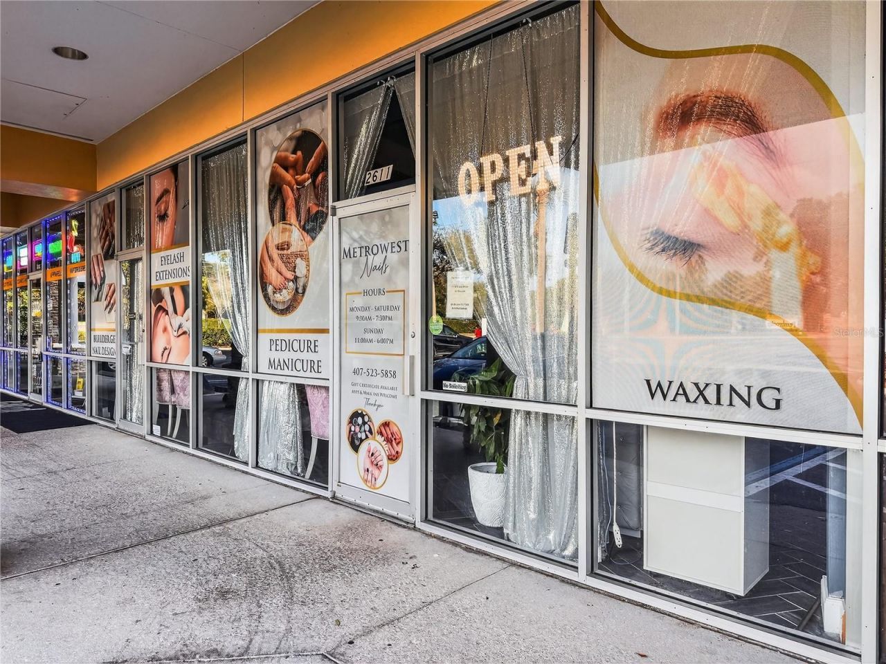 Metro West Nail & Spa - Established Turn-Key Salon in Prime Orlando LocationMetro West is offering a fully equipped, turn-key nail salon in a prime location with high visibility, located just off the main road on Hiawassee. The business been around Metrowest area for over 20 years and it's a profitable business. The owner looking to retire and move back home. This spacious salon is designed for high volume and efficiency, accommodating 11 nail technicians (including 1 part-time) with 16 spa pedicure chairs and 22 manicure tables. The interior features 3 elegant chandeliers and 6 mounted TVs for enhanced client comfort. The layout includes 4 private rooms: 3 waxing rooms, with one converted into a head spa, plus 1 additional room for washer and dryer. The salon is fully equipped with 2 double sinks, 2 water heaters, 2 microwaves and built-in kitchen cabinets.