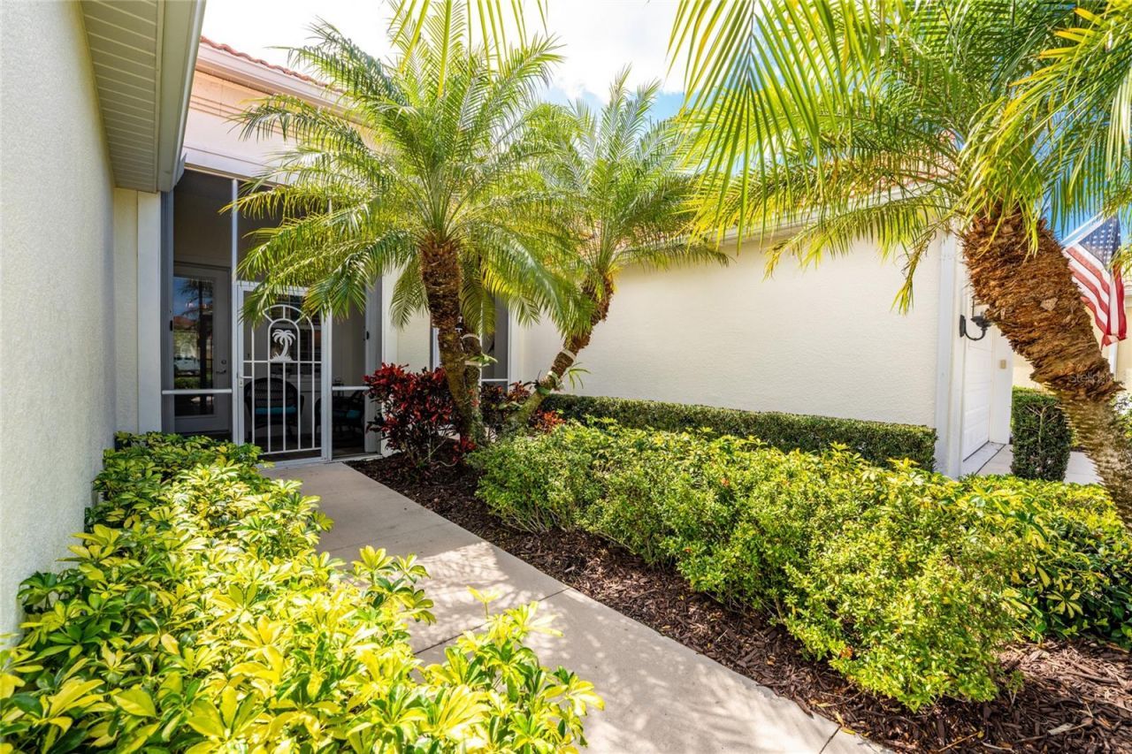 The charming community of Arlington Cove is the perfect place to call home, with maintenance-free Florida Living. This intimate community comprised of 76 homes offers a peaceful setting while being only minutes away from the area's Gulf Beaches. This well-appointed villa features 2 bedrooms, a den, and 2 bathrooms, offering the ideal blend of comfort and functionality for both everyday living and entertaining. Enter through the welcoming screened entryway into a bright, open floor plan highlighted by tile flooring throughout and soaring ceilings. The designer kitchen is the heart of the home, overlooking the lanai and showcasing an oversized center island, elegant tile backsplash and high end cabinetry, finished with crown molding, granite countertops, and stainless-steel appliances-perfect for cooking and gathering with friends and family. The versatile den, accessed through dual French doors, includes a built-in Murphy bed and wardrobe, allowing the space to easily function as a guest room, home office, or hobby area. The tranquil primary suite offers a spacious walk-in closet and a beautifully designed en-suite bathroom featuring dual sinks with granite countertops and backsplash, a linen closet, and an oversized walk-in shower, creating a relaxing private retreat. A comfortable guest bedroom and well-appointed guest bath with a walk-in shower and sliding glass doors provide additional convenience, along with an interior laundry room with storage cabinets. Enjoy the Florida sunshine from your extended covered lanai, complete with accordion hurricane shutters for added protection and peace of mind. Additional highlights include plantation shutters throughout, crown moldings, a custom glass front door with built-in blinds, barrel tile roof, and a 2-car garage with epoxy flooring. Numerous updates enhance the home's value and efficiency, including(a new HVAC system 11/23), dishwasher (1/23), washer 10/22), garbage disposal (11/20) and water heater (01/21). Lush tropical landscaping and low-voltage lighting adds to the home's curb appeal. Residents of Arlington Cove enjoy low HOA fees and true maintenance-free living, including lawn care and irrigation, along with access to a heated community pool and cabana-perfect for relaxing or socializing with neighbors. Ideally located near **Manasota Key beaches and Englewood Beach, the community also offers easy access to boating and fishing on Lemon Bay and the Gulf of America. Don't miss the opportunity to enjoy the best of Florida coastal living-schedule your private showing today.