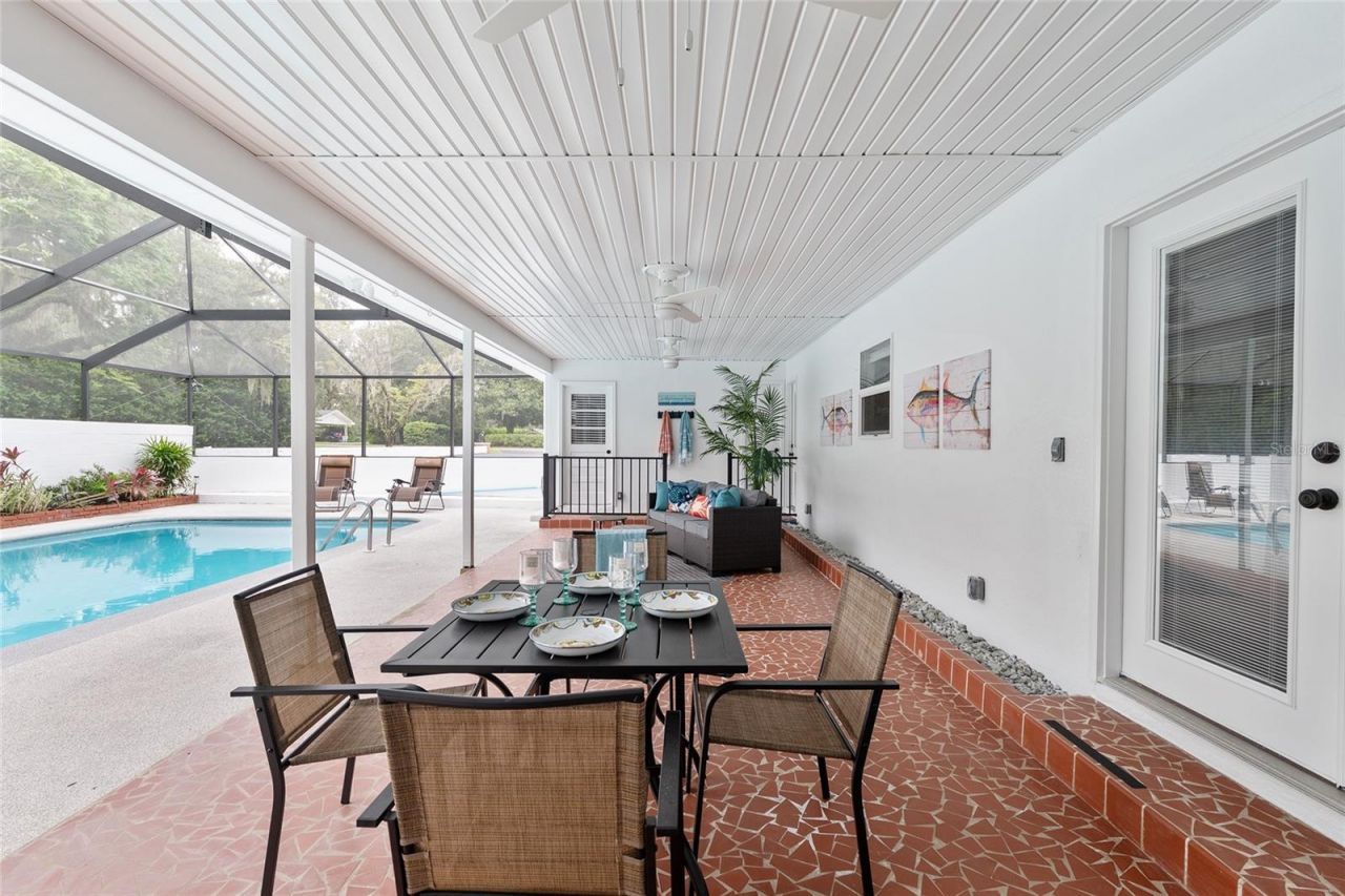This spacious home is located in sought after Woodfields just 10 minutes to downtown. Nestled among million dollar properties it offers a screened in pool with an expansive covered patio and a fenced in area in the back yard for pets and play. Highlights include a beautifully shaded lot, a very large carport that can house 2-3 automobiles including a cedar lined storage area. Inside, you'll find an enormous family room, and a large living room open to the kitchen and dining area. The kitchen has quality wood cabinets with a nice pantry and plenty of storage, a gas stove, stainless appliances, granite countertops, and window that overlooks the pool area. The primary bedroom in this home is a prize winner with it's spaciousness and 2 large walk-in closets. French doors off the primary bedroom open up to the screened in patio. You'll love the three full baths with one bath opening to the pool area for convenience to swimmers! A big laundry room is located off the patio. Whole house Generac generator. Ocala living at it's best within a golf cart friendly neighborhood for a fun trip downtown for dining and shopping!