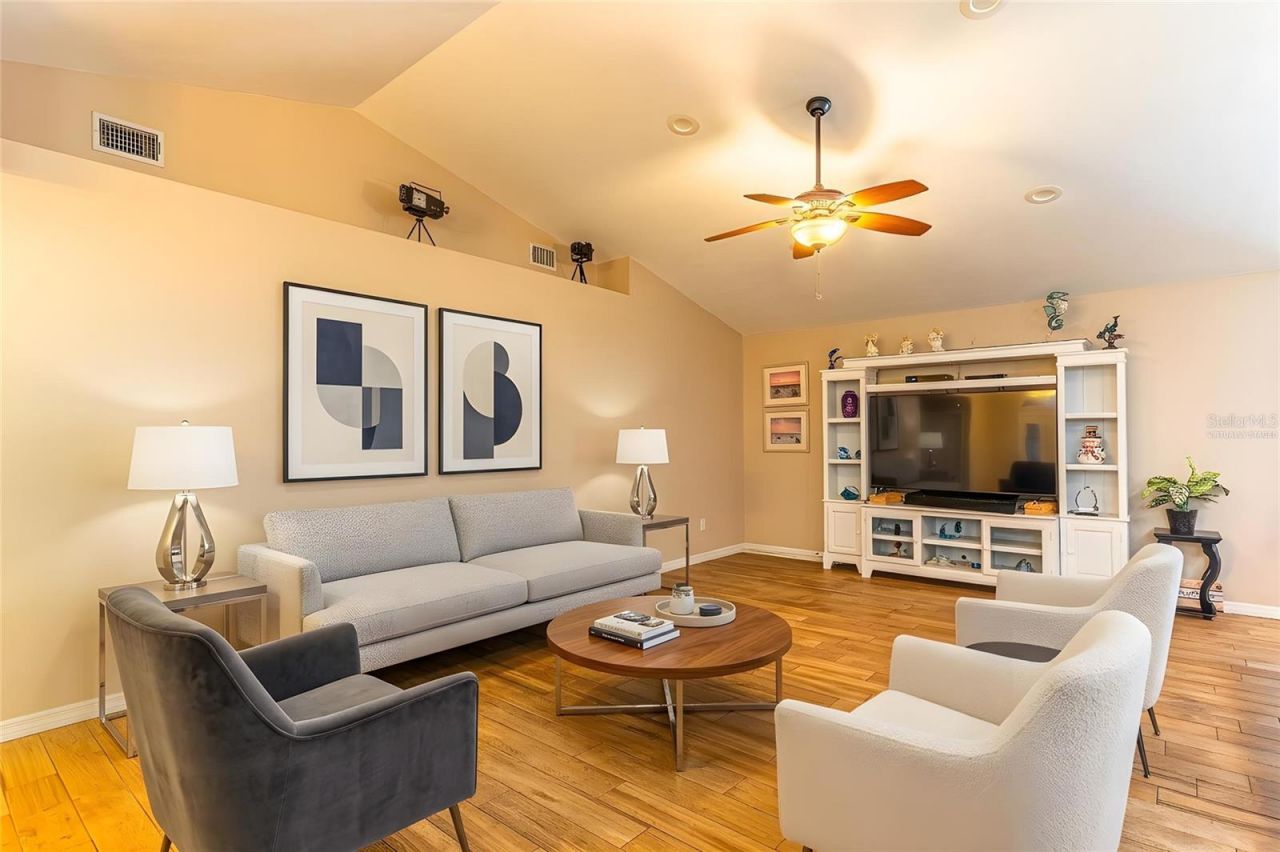 Welcome to this beautifully updated home located in the desirable Spring Lake area of Sebring! Situated on a spacious half-acre lot, this well-maintained residence offers over 2,200 square feet of living space with a comfortable split floor plan designed for both privacy and functionality. The kitchen and living room showcase impressive volume ceilings, soaring to approximately 10 feet with a dramatic peak reaching 13 feet, creating a bright and spacious open feel. The living room is wired for surround sound and features recessed cathedral shelving with electrical outlets, perfect for electronics, d?cor, or media displays.The beautifully updated kitchen features gorgeous level 5 granite countertops, extra-tall staggered custom craft-made soft-touch cabinetry, and all stainless-steel appliances, including a new dishwasher and a microwave convection oven combo. Countertops were designed with an additional six inches of depth to provide expanded workspace, while the island offers even more prep space and is equipped with under-cabinet mounted power strips and lighting. A pantry and abundant cabinetry provide plenty of storage, and the home also features two dining areas, perfect for both casual meals and formal gatherings. The laundry room complements the kitchen with matching cabinets and granite countertops, providing extra style and functionality.The primary suite offers a large walk-in closet and a beautifully renovated en-suite bathroom featuring a 5x6 tiled dual shower with inset shelves, an extra-long vanity, and multi-level lighting for both function and ambiance. Additional bedrooms are generously sized with ample storage, ceiling fans, and AC returns in the ceiling for optimal airflow and even temperatures. The home features tile plank flooring throughout the main living areas and master bedroom. This home includes a bonus room that provides flexibility and can be used as a fourth bedroom, office, hobby room, or additional living space. The washer and dryer are included for added convenience.Step outside to your private backyard oasis featuring a large screened-in patio with a heated, fiberglass saltwater pool and integrated spa, perfect for relaxing or entertaining year-round. The spa can be conveniently controlled right from your phone. The backyard also includes a 10x20 shed, a 10x10 golf cart barn with entry from the pool, and a full sprinkler system to keep the landscaping lush and well maintained.Additional highlights include a double garage, updated flooring, numerous upgrades throughout, and a roof replaced in 2018. The home is on septic, and water service is provided by Spring Lake Water. Located in a peaceful neighborhood with easy access to nearby lakes, golf, and outdoor recreation, this property offers space, comfort, and convenience.