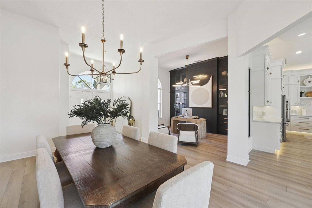 A Quiet Gated Lake front Setting with Light, Openness, and every day comfort. Situated on a large corner lot, this extensively updated home provides unobstructed lake views, a side-entry two-car garage, and a relaxed neighborhood setting with low HOA dues. The open and functional floor plan features soaring 12-foot ceilings in the main living areas, abundant natural light, and electric roller shades that provide privacy at the touch of a button.The custom kitchen was thoughtfully designed for both everyday living and entertaining, featuring high-quality cabinetry, an oversized quartz island, induction cooktop, KitchenAid appliances, Delta Pot filler, full-extension pantry storage, and layered accent lighting. Lighting continues throughout the home with adjustable gallery and art lighting that enhances both function and atmosphere.Additional interior highlights include a custom office that easily doubles as a guest room, a fully upgraded laundry room with ceiling-height cabinetry, and generously sized bedrooms, including a guest suite with direct access to the pool area. Recent improvements include a 2022 HVAC system with transferable warranty, 2024 blown-in attic insulation, whole-home surge protection, and integrated lighting and climate features throughout.Outdoor living is equally well considered, with a spacious paver patio, screened lanai, temperature-controlled in-ground pool and swim spa, and professionally landscaped grounds accented by color-changing LED lighting. The primary suite serves as a private retreat with a soaking tub, oversized shower, illuminated mirrors, ambient lighting, and custom walk-in closets. Thoughtful upgrades extend throughout the home, reflecting careful attention to quality, comfort, and long-term livability.*Lake view lot*Swim spa*Flexible office/4th bedroom*Bright natural light throughout*move-in ready condition